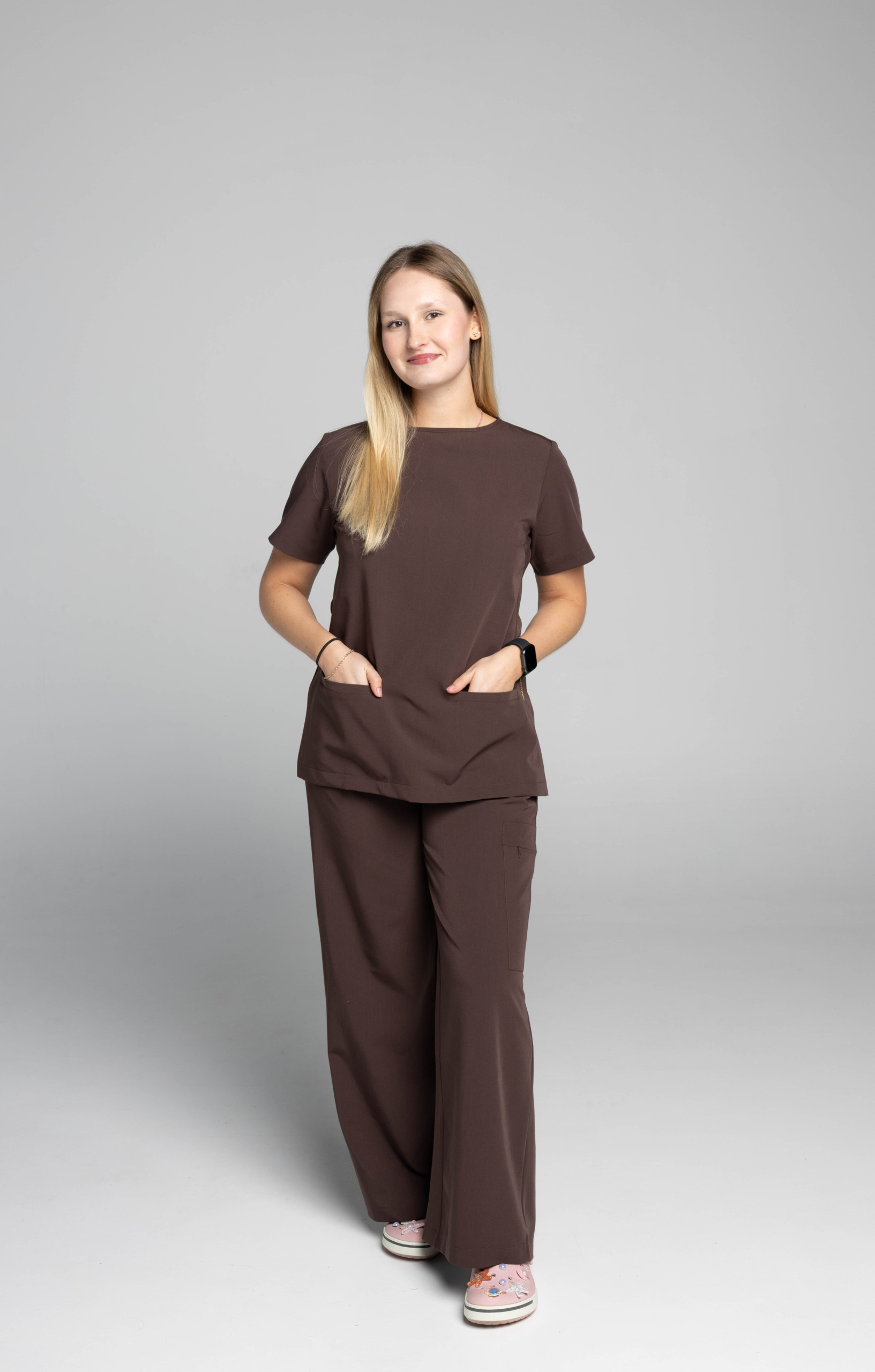 spodnie medyczne palazzo szeroka nogawka czekoladowy brąz – PRE ORDER